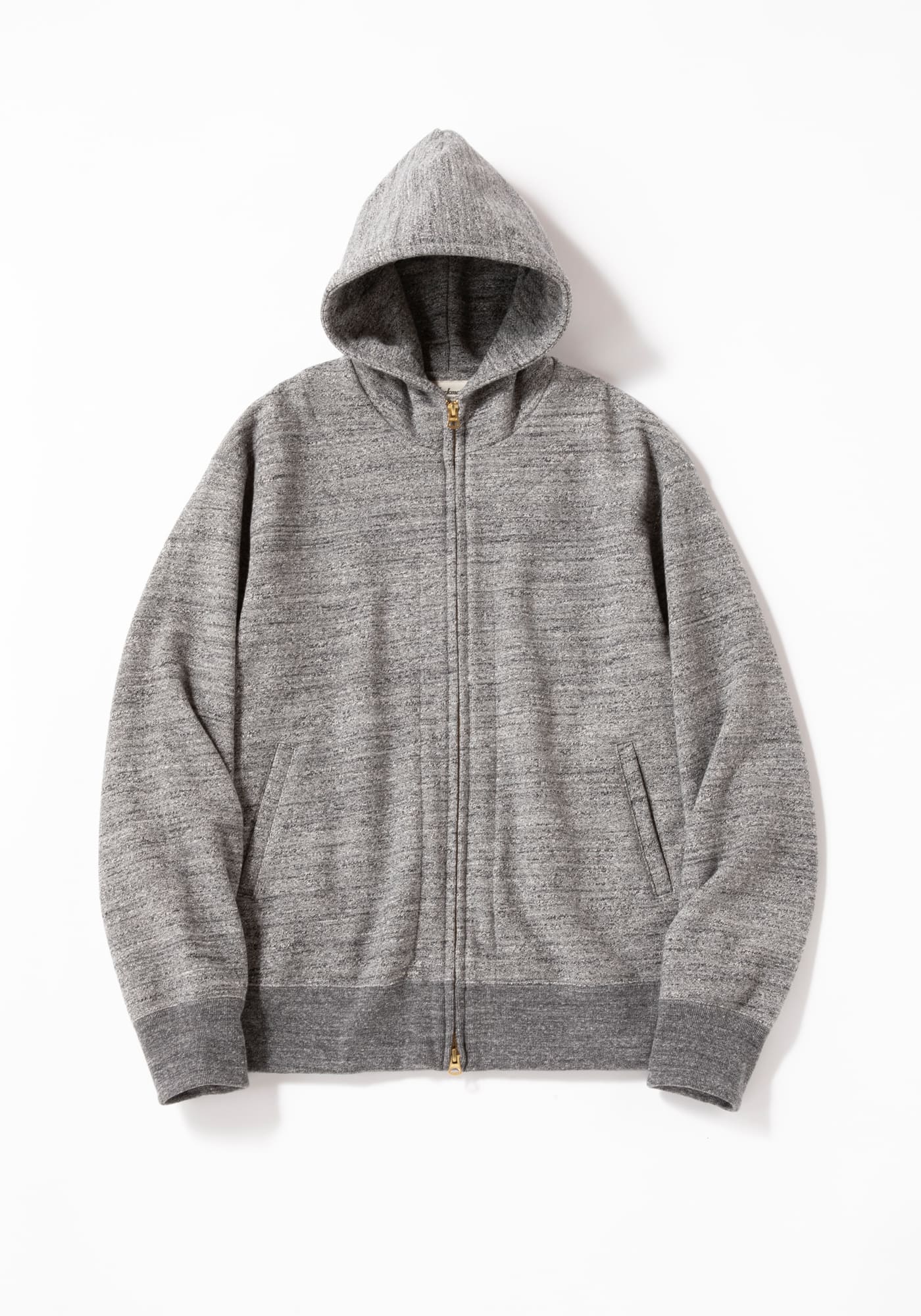 The material is made from No.10 for the front yarn and thick No.7 for the back yarn, giving it a substantial and heavyweight feel. The zipper design that raises the hood tip prevents the neck from getting cold. The double-sided zipper design makes it comfortable to wear and less likely to damage skin or clothing. The collar is reinforced all around the neck, as seen in baseball uniforms, so that it looks nice even when the zipper is open. We paid attention to the details, such as comfortable flat seam stitching, ribbing without wavy edges, and durable single-welt pockets.