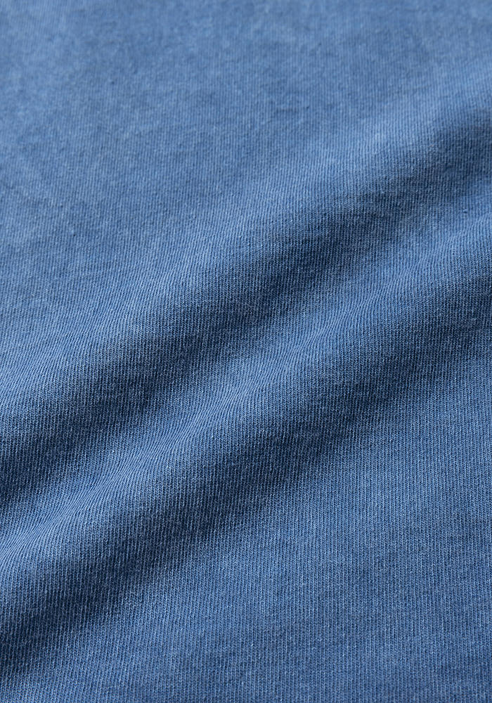 18/1米綿空紡糸づかいの天竺素材を使用した半袖Tシャツ。春から夏の終わりまで着用できる厚すぎず薄すぎない肉厚感でドライな風合いとザラッとした肌触りがあります。この米綿はミシシッピ川流域で栽培した綿を空気紡績で13~32mmの間で幅を変化させながら綿糸を紡ぐ方法を用いてラフな表情と独特のシャリ感があるのが特徴です。デザインは1970年代のひとつボタンBaseballユニフォームを参考にした独特な首周りと当時のクラシカルな雰囲気を表現したダメージ金属塗装ボタン、肌着っぽくならないように職人の技術で衿先が少し開くように工夫した縫製が特徴です。2017年から続く特徴的なデザインはBaseballに関連するブランドのDNAを色濃く反映したデザインです。スペアボタン付き。ピグメント染色により若干硬さのある素材感になります。New color-372 Fade Blue,465 Fade Butter