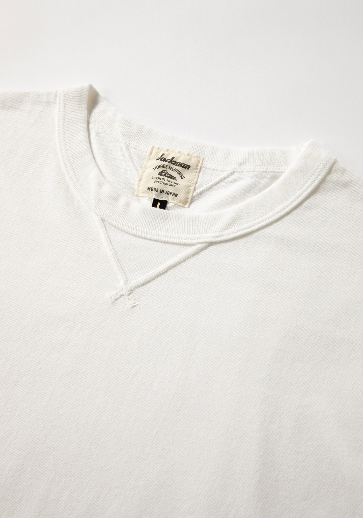 乾燥感がありザラッとした肌触りが特徴のアメリカ綿を空気紡績によって粗野な表面感に仕上げたリブTシャツです。2016年にリリースしたリブTーShirt(JM5632)をマイナーチェンジして再リリースいたします。変更点はドツメRib T‐Shirtと同じシルエットにしてリブTシャツファンが長い期間着用できるように修正、リブも針抜きではなく好き嫌いの少ないプレーンなリブを採用、首周りの伸縮をサポートするガセットも前後に配置。
