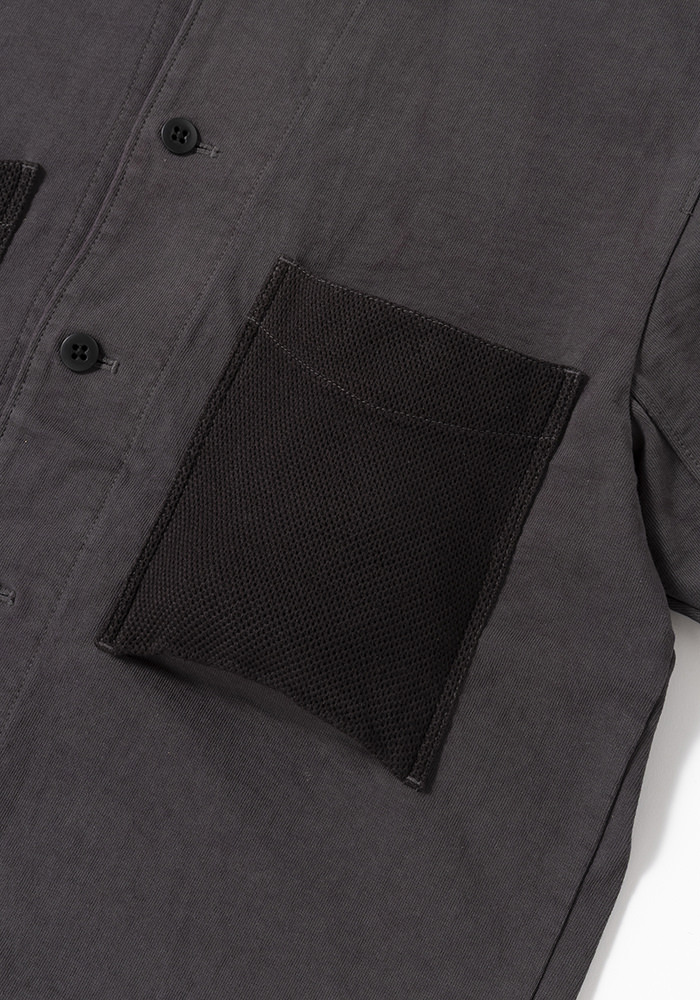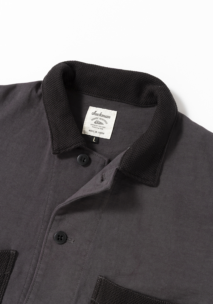 自動制御が効ないアナログな機械「吊り編み機」。シンカー編み機に比べて手間がかかり編み機の台数も限られていますが永く着用できる素材を開発する上で「均一に度目を詰める」必要があったため現在でも変わらず吊り編み機を使用して編み立てています。アメリカ産の綿を使用して編み立てたドツメ天竺は約11.5オンス。均等に度目が詰まっているため着用と洗濯を繰り返しても歪みや型崩れが起きにくい特徴があり、生地に硬さとハリ感があるため着用時も肌離れが良く快適です。そしてこの極厚生地を縫製する自社工場の技術で様々なドツメ天竺のアイテムをリリースしています。このBaseballシャツはまだ襟が付いていた1900年初頭のBaseballユニフォームを参考にカラーごとに異なる素材を衿とポケットに使用。3色とも異なった表情にしました。New color_101 Navy,177 Ink Black,444 Apple Green