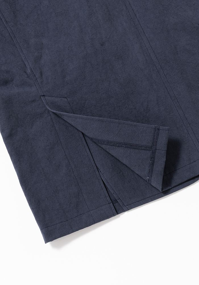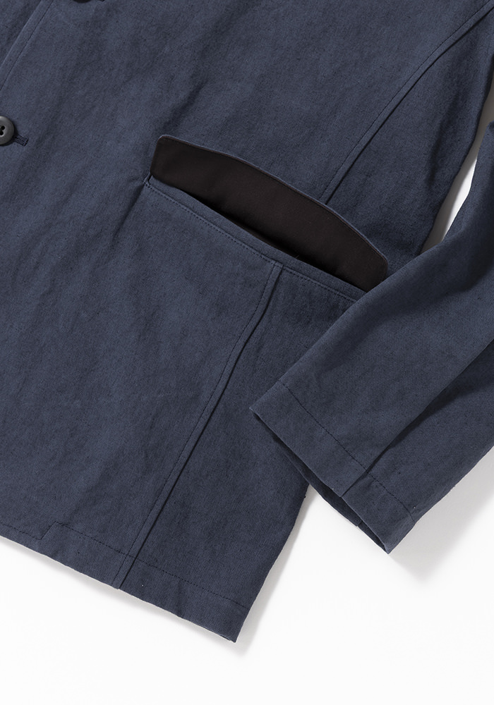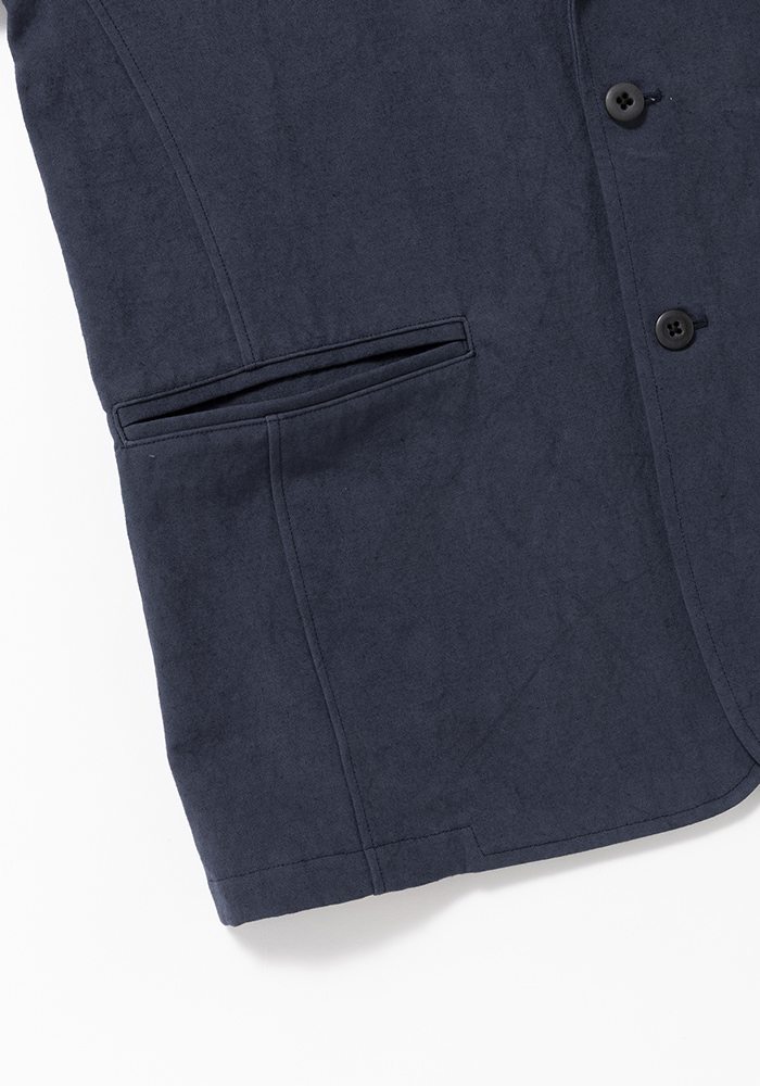 2013年リリースのルーキーパンツで使用している硫化染めのキャンバス織り布帛を使用したキャンバスジャケットです。硫化染めは通常の染色方法とは違い意図的にシワや色ムラ、スジを作るようにして染めるので粗野な素材がさらに無骨に見えます。デザインは1930年頃の野球選手やコミッショナーの間で流行ったややボリュームのある印象的な2ボタンテーラードジャケットをベースに垂れたコージラインとサイドベンツ、丸みのあるフォルムが特徴です。まだ寒さの残る2-3月のセットアップとしてリリースします。発売予定日_2月