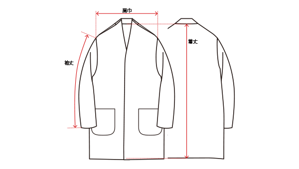 着丈:後ろ首ぐり中心(衿を含まない)~後ろ裾(最長部分)
