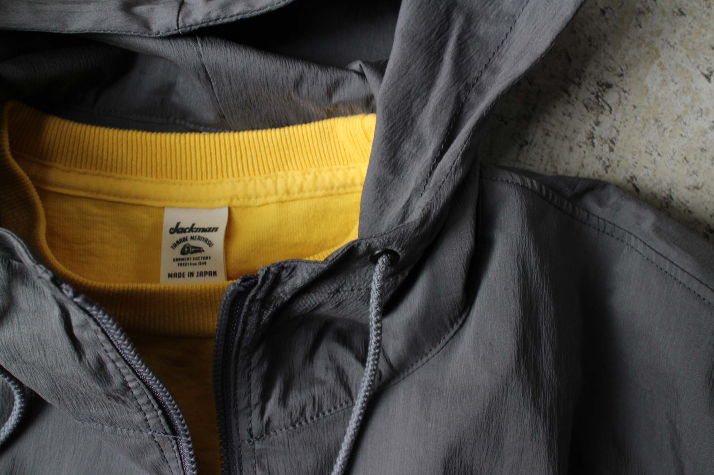 The warp is made of 80/1 ultrafine cotton, and the weft is woven with processed nylon and polyester yarns. The difference in shrinkage between cotton and synthetic fibers produces a crepe wrinkle effect, and the material is extremely light and thin, with good stretchability and quick-drying properties. The yarn itself has moisture absorbency, so the pants do not become stuffy and can be worn comfortably even in summer.