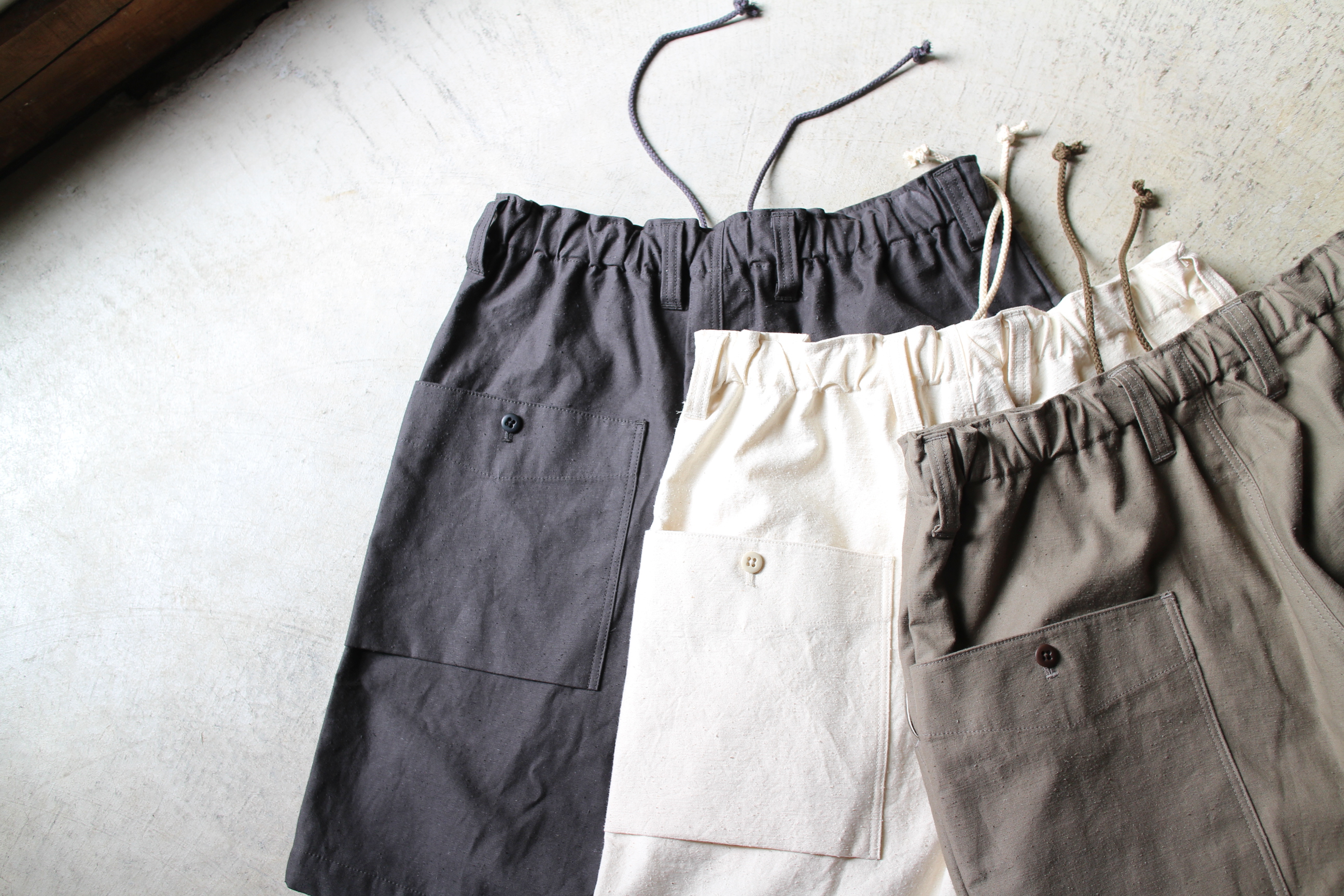 ベルトループ付き前開き仕様で大ぶりのポケットを配した