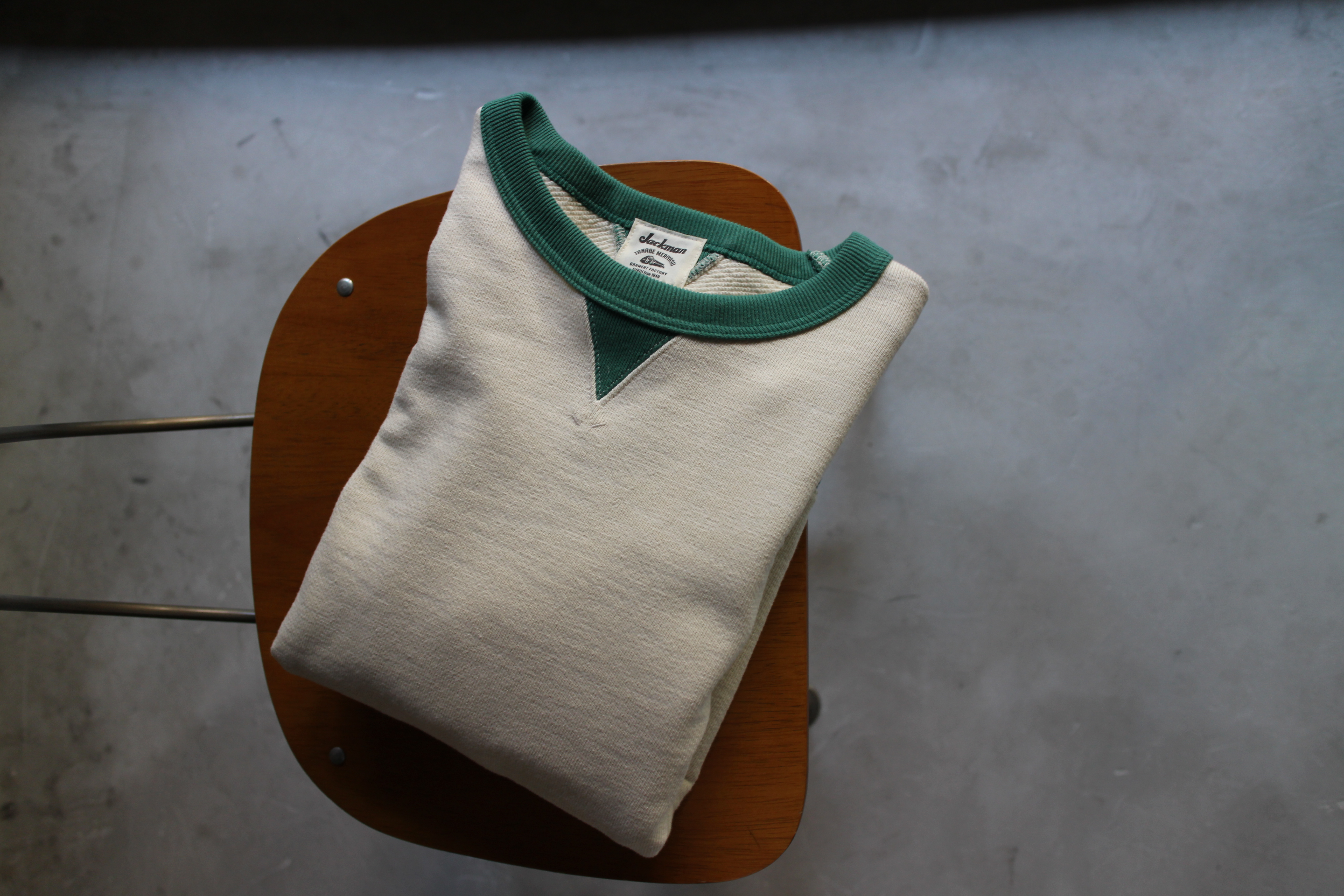 The GG (Garagara) Sweat Crewneck is made from French terry fabric knitted in Japan using thick, Japan-made yarn. The solid colors emphasize a thicker feel, while the heather colors blend several colors of twisted yarn to create a well-balanced, grainy feel. Last season, we widened body and shoulder widths to improve comfort, sloped the shoulders to eliminate tightness when arms are lowered, and added more ease from the arms to the cuffs. We also switched to flat seam stitching in key areas to improve the feeling of the piece against the skin and its comfort when worn and added gussets at the front and back of the neckline, which allows for greater elasticity when putting it on and taking it off and prevents the collar from stretching out.