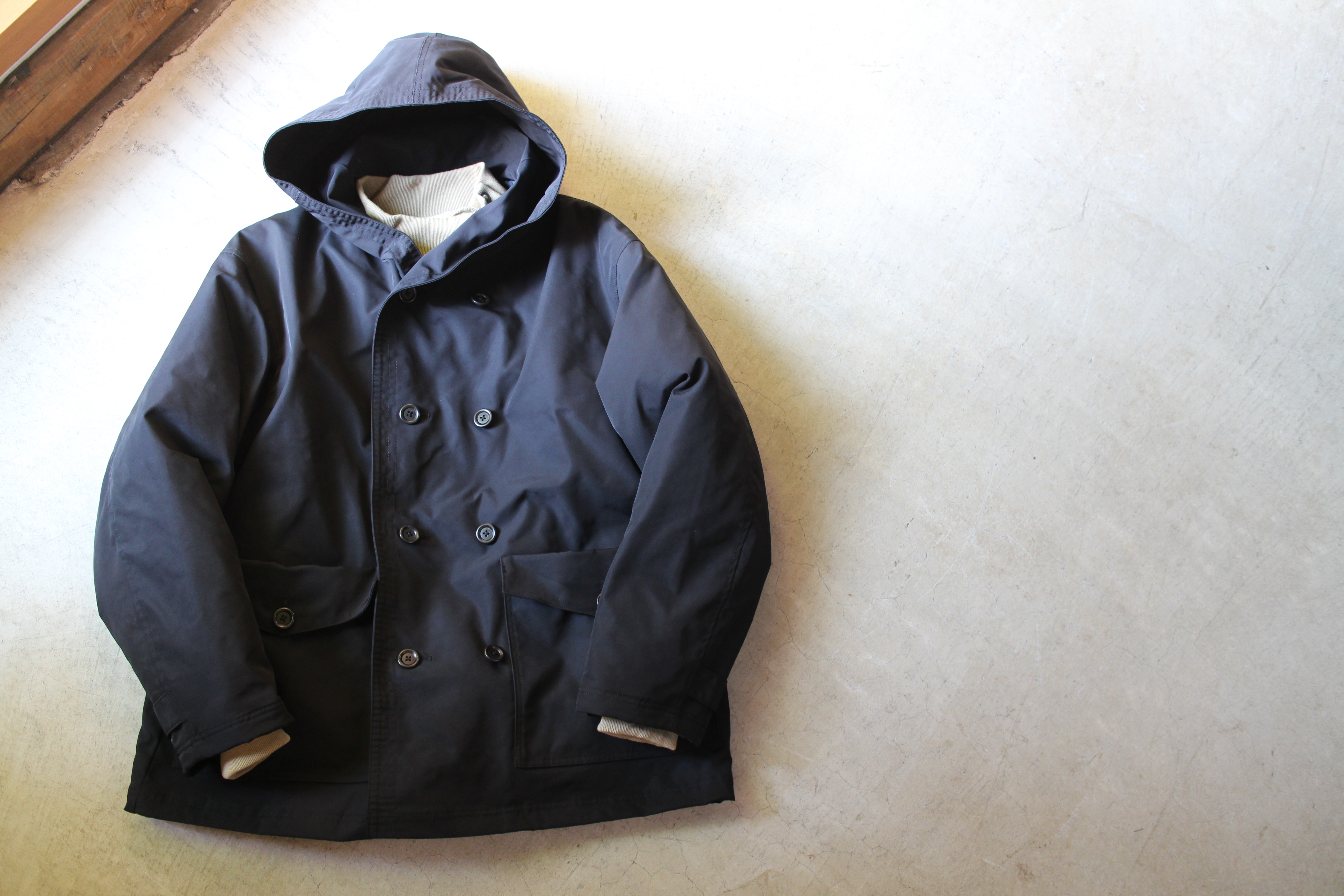This Hoody coat utilizes Oxford fabric woven with polyester filament yarn. By bundling as many as 200 strands of thicker-than-average polyester threads, we’ve achieved a flexible material with a subtle sheen and high strength. Its short length lends it to mixing and matching, but it also features insulation, large pockets, and a hood, making it perfect outerwear for spectating. We’ve designed it with a generous shoulder and body width to accommodate inner wear.